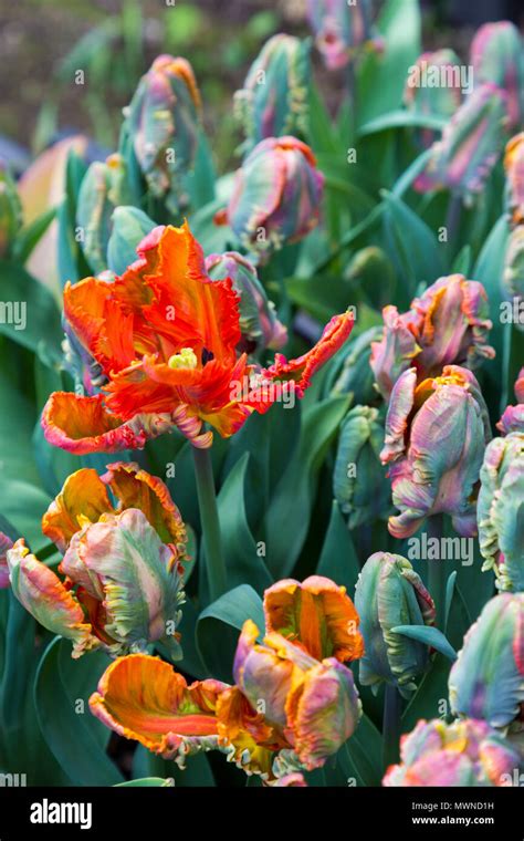 Full sun, partial shade height/habit: Blumex parrot tulip is even more captivating than most. 'blumex favourite' is a parrot tulip, with ruffled, fringed petals of orange, green, yellow and dark red, claret and yellow.
