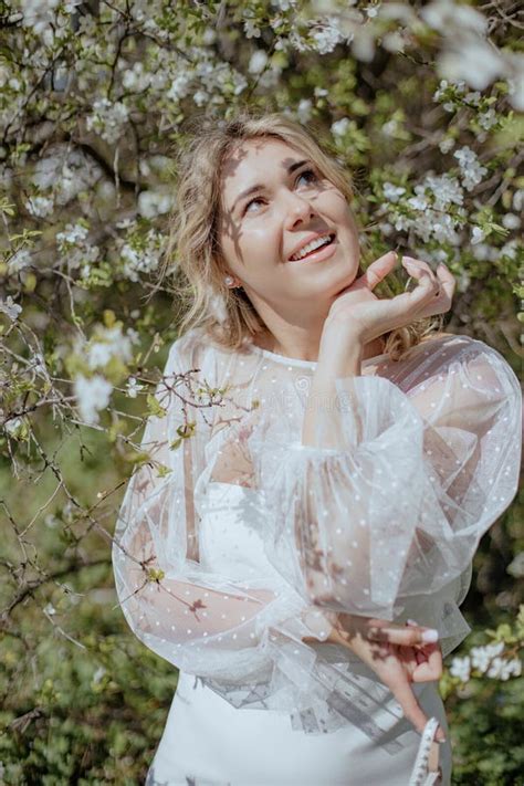 Sakura Tree Blooming. Small Girl Child in Spring Flower Bloom. Enjoy from www.dreamstime.com